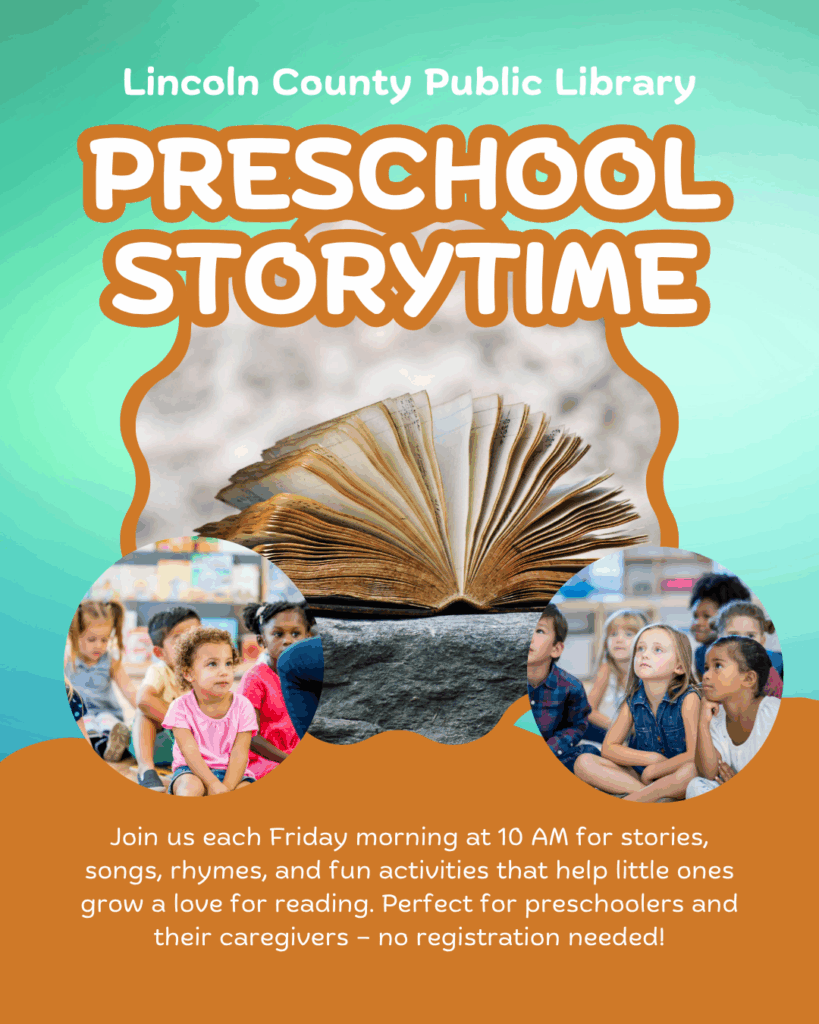 At Lincoln County Public Library, our programs are designed to bring people together through reading, creativity, and community. Whether you’re discovering new stories during Preschool Storytime, joining a lively book discussion, or attending one of our hands-on workshops, there’s something here for everyone.